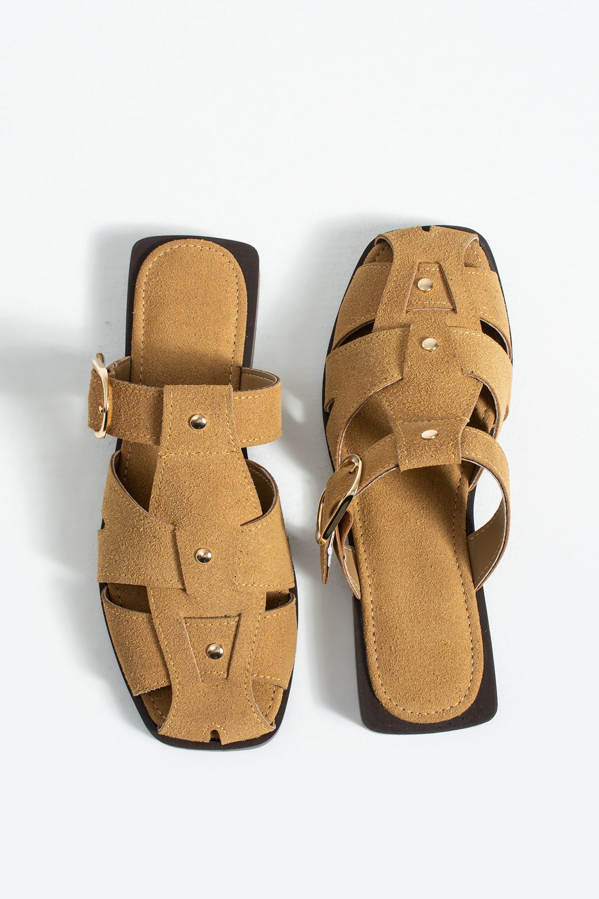 Frank Kadın Süet Kafes Sandalet - Yumuşak Tabanlı Tokalı Sandalet